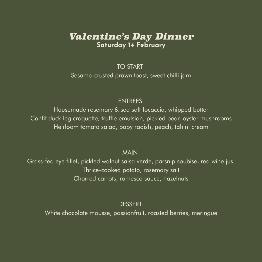 Whether you’re celebrating with your significant other, a first date, or a beloved family member, we’re honouring love in all its forms this Valentine’s Day, Saturday 14th February.